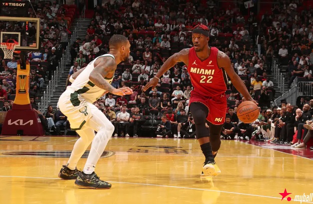 热火队首发:吉米-巴特勒、泰勒-希罗、巴姆-阿德巴约、邓肯-罗宾逊、海伍德-海史密斯