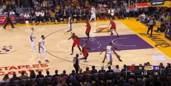 最后3分钟詹姆斯助攻库兹马外线命中三分,突破造成犯规两罚全进一度把分差缩小到4分,但是猛龙表现的更有韧性,一直把领先优势保持到终场。最后47秒詹姆斯被替换下场宣告湖人彻底放弃本场比赛。