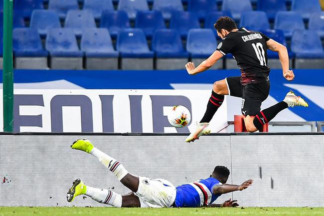 博纳文图拉和卡斯蒂列霍出场,换下恰尔汉奥卢和卡拉布里亚。伊布左路直传禁区,凯西小角度射门被法尔科内封出。AC米兰第78分钟逃过一劫,桑普替补贝尔托拉奇禁区左侧被凯尔撞倒,帕斯夸先给了角球,但得到VAR提示,到场边观看回放后补吹点球,马罗尼操刀推射太正被唐纳鲁马封出!