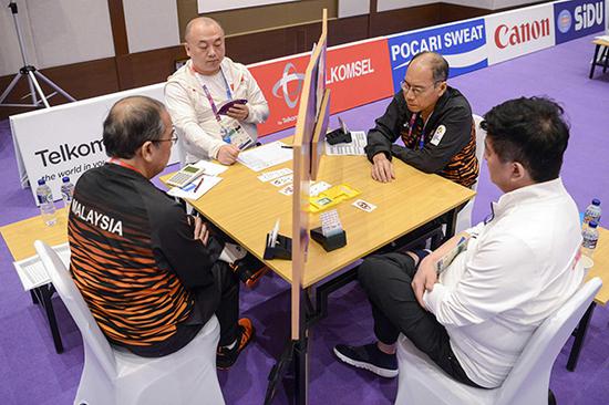 2018年雅加达亚运会桥牌比赛,中国队对阵马来西亚队。