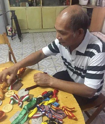 何姿父亲整理女儿的荣誉奖牌 “那时的训练对我不算太难,就是体力上有一些累,我很能吃苦。但我觉得父亲比较难,看到他每天这么累地带着我东奔西走,我替他感到心疼。”