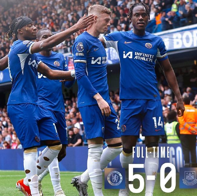5月5日,英超第36轮,切尔西主场5-2击败西汉姆联。